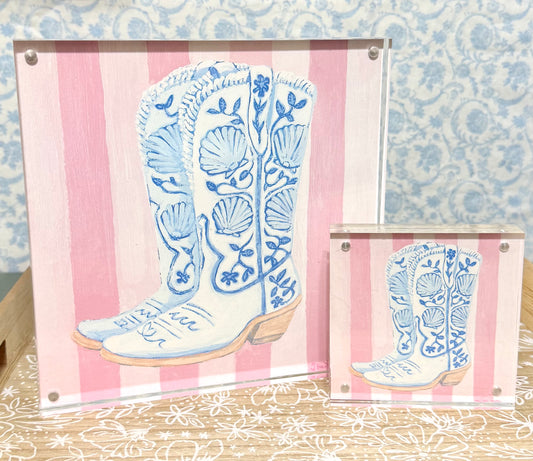 "Coastal Cowgirl" Shell Boots - Acrylic Framed Print