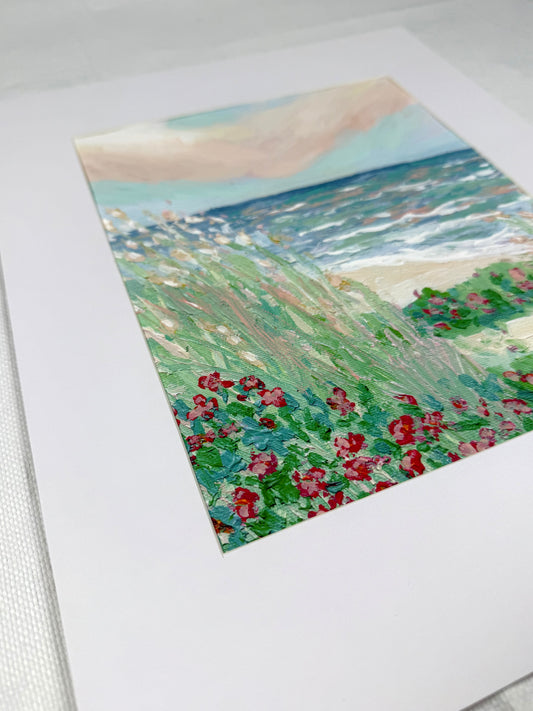 Hand-embellished -"Sunset Walk" Beach -Canvas Print 8x10