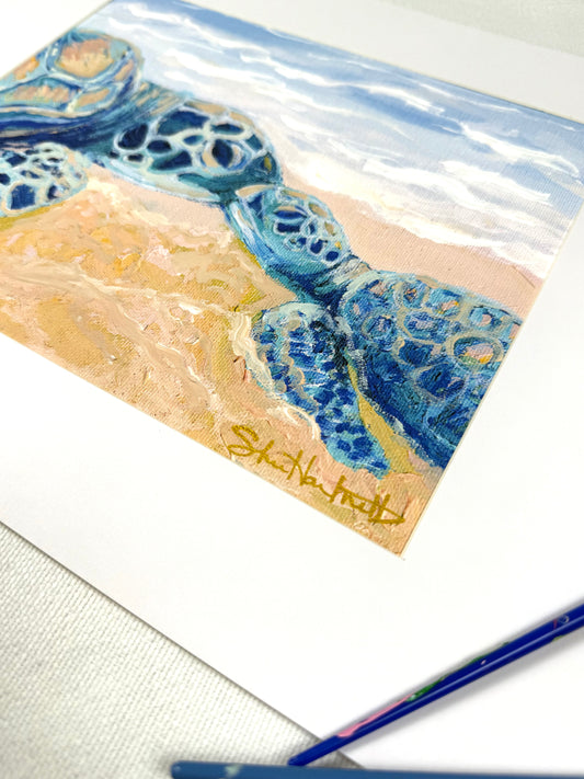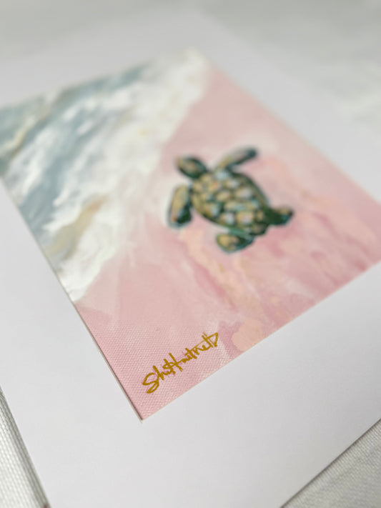 Hand-embellished -"First Swim" Sea Turtle -Canvas Print 8x10