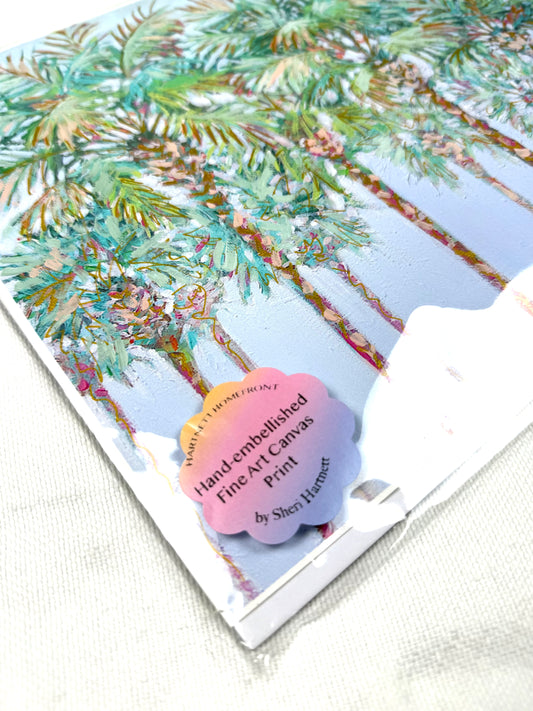 Hand-embellished -"Under the Palms" Palmetto Trees -Canvas Print 11x14