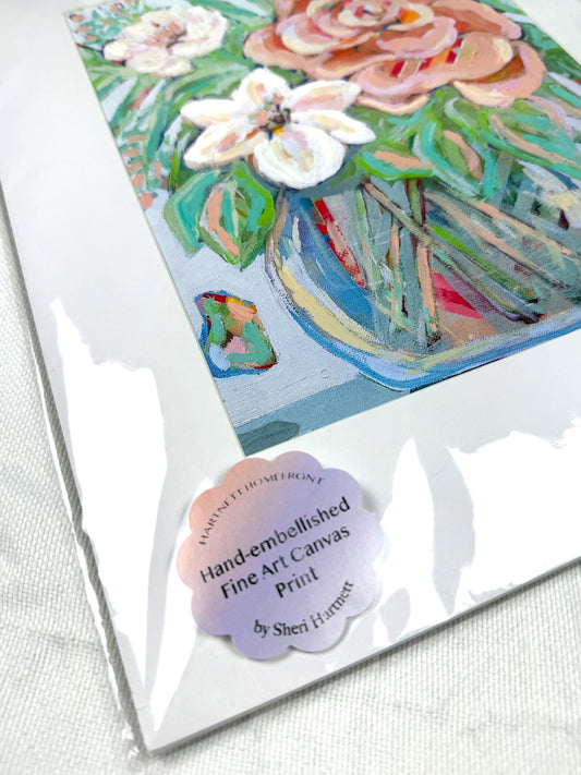 Hand-embellished -"Bloom" Colorful Floral -Canvas Print 8x10