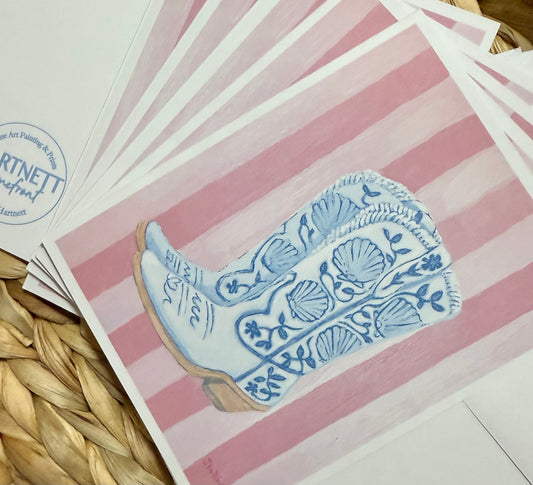 Large Blank Card Set of 6- Coastal Cowgirl Boots